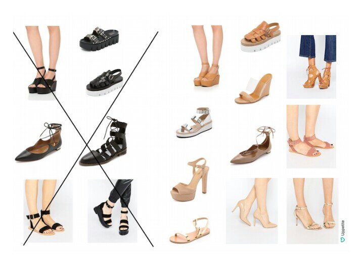 1. Контрастная обувь всегда "режет" ноги и они кажутся намного короче!