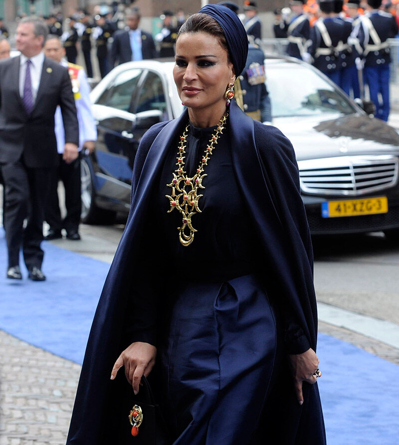 Моза бинт Насер аль Миснед родилась в богатой катарской семье.Это красивая,умная,стильная,статная и прекрасно образованная женщина,которая славится своим нелёгким и властным характером. 18-летняя девушка вышла замуж за перспективного наследника катарского эмира в 1977 году,став при этом его второй женой(сейчас у него их три). В 1995 году её супруг совершил государственный переворот и свергнул с престола своего отца.С этого момента начался расцвет Катара.А девушка стала шейхой. Сейчас Шейха Моза-заметная политическая фигура,имеющая ряд почётных государственных должностей. Женщины Катара носят длинные чёрные платья и закрывают свои лица.Однако своей любимой жене шейх позволил "немного" отойти от традиций,не закрывать лицо и носить модную одежду,а иногда её видят даже в брюках. Благодаря второй супруге шейха,женщины Катара сейчас имеют намного больше прав,чем женщины других арабских стран.Интересно,что дамы там до сих пор носят только строгую традиционную одежду,а в торговых центрах поку