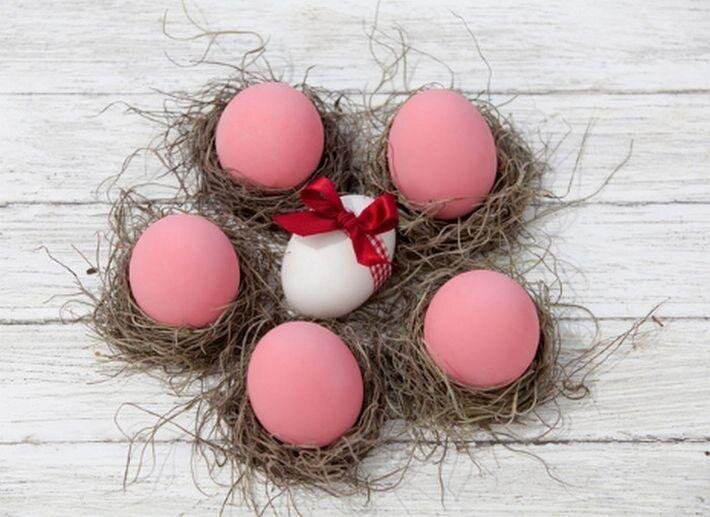 1. Свекла окрасит яйца в цветовую палитру от бледно-розового до насыщенного бордового. Для покраски необходимо натереть овощ и проварить 20 минут. Добавить уксус и опустить в жидкость варенные яйца. От времени пребывания яйца в красящей воде зависит насыщенность цвета. 2. Мелко нарезанный шпинат следует проварить и так же добавить яйца. Получится нежно-зеленый цвет. 3. Отвар крапивы придаст яйцам фисташковый цвет. 4. Если проварить яйца 10 минут в воде с добавлением куркумы - получится оранжевый цвет. 5. Отвар из краснокачанной капусты придаст яйцам космический оттенок сине-сиреневого цвета. 6. Чай каркаде дает глубокий серый оттенок. 7. Серебристый цвет можно получить, если опустить яйца в кастрюлю, где 15 минут проваривалась замороженная черника 8. Если подержать яйца в горячем крепком кофейном или чайном растворе - можно получить гамму цветов от бежевого до насыщенного коричневого. 9. Лук - отличный старинный способ декора яиц. Следует проварить шелуху и опустить в отвар яй