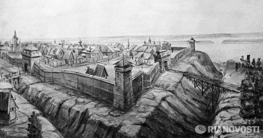 №2. Репродукция рисунка А. Грошева "Симбирск XVIII века"