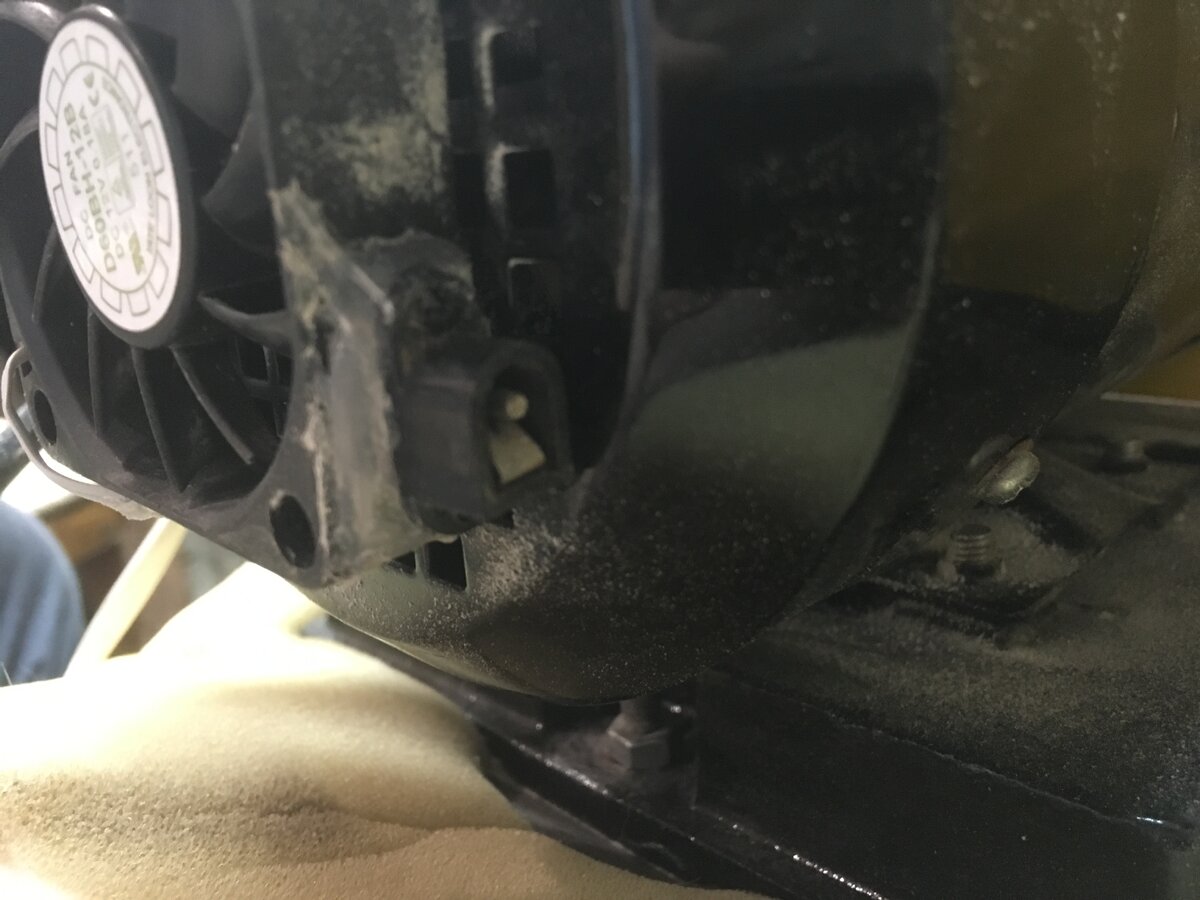 В процессе работа на станке приходилось делать солидные перерывы, чтобы дать двигателю остыть. Чтобы избежать перегрева и вынужденных "перекуров" (никогда не курил и вам не советую), решил установить на корпус двигателя небольшой вентилятор от компьютерного блока питания.