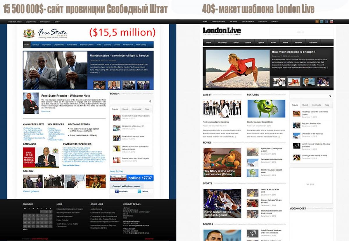 15 500 000 долларов США потратило правительство южноафриканской провинции Свободный Штат на официальный веб-сайт, сделанный на движке WordPress в макете London Live, стоимостью $40. Компания бизнесмена, имеющего связи в правительстве, выиграла тендер, хотя другие компании представили предложения значительно(!) ниже по стоимости. Круто!? Мифы о коррупции
