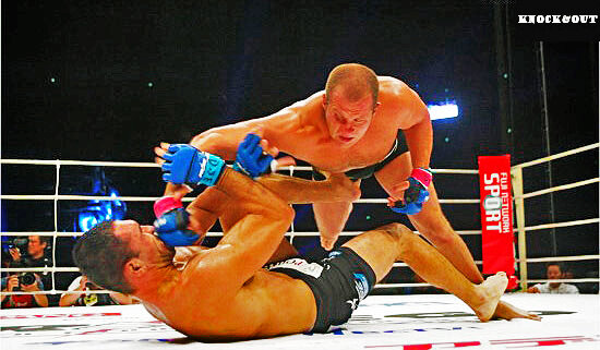 Как Федор Емельяненко победил "Минотавра". Федор Емельяненко не всегда был легендой смешанных единоборств. Когда-то ему так же, как и остальным, приходилось завоевывать чемпионский статус. А титулом PRIDE тогда владел бессменный, неоспоримый и единственный чемпион организации в тяжелом весе Антонио Родриго Ногейра по прозвищу "Минотавр". "Минотавром" Ногейру стали называть за тот лабиринт, который он показывал в борьбе в партере. Бразилец являлся настоящим мастером джиу-джитсу, который мог запутать и заломать кого угодно. Однако Емельяненко с первых минут показал, что он бороться с Ногейрой по его правилам не намерен. Россиянин буквально выскочил из прохода в ноги, после чего едва не выбил "Минотавра" за канаты: На протяжении всего боя Ногейра пытался провести свой коронный болевой прием, но тщетно. Федор не только пресекал все эти попытки, но и жестко наказывал бразильца за активность, постоянно всаживая добивающие удары. Несколько раз Федор был близок к досрочной победе, но Ногейра п