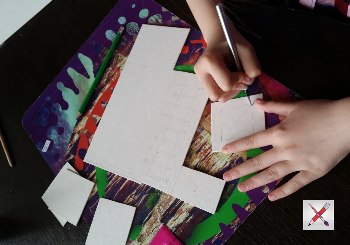 Здравствуйте, дорогие читатели. Я долго ничего не мастерила, потому что у нас в школе проходили контрольные работы, и мне нужно было готовиться к их сдаче. А сегодня я хочу рассказать о том, из какого материала я делала избушку на курьих ножках, и почему мы с дядей выбрали именно этот материал для изготовления наших проектов и расскажу почему, у нас есть целых 6 причин для этого. Мы используем пивной картон. Смешное название и я не знала причем тут пиво, но оказывается, что это название имеет смысл из-за одного хорошего свойства этого картона. Он очень хорошо впитывает влагу, и потому его используют в качестве подставок под кружки, чтобы защитить стол от царапин, капель пенного пива. Это качество пивного картона очень хорошо подходят для того, чтобы его раскрашивать гуашью. Пивной картон легко и быстро склеивается, поэтому можно довольно быстро смастерить свой проект, дольше резать приходиться... Я использую прозрачный силикатный клей. Еще одно отличительное качество пивного картона о