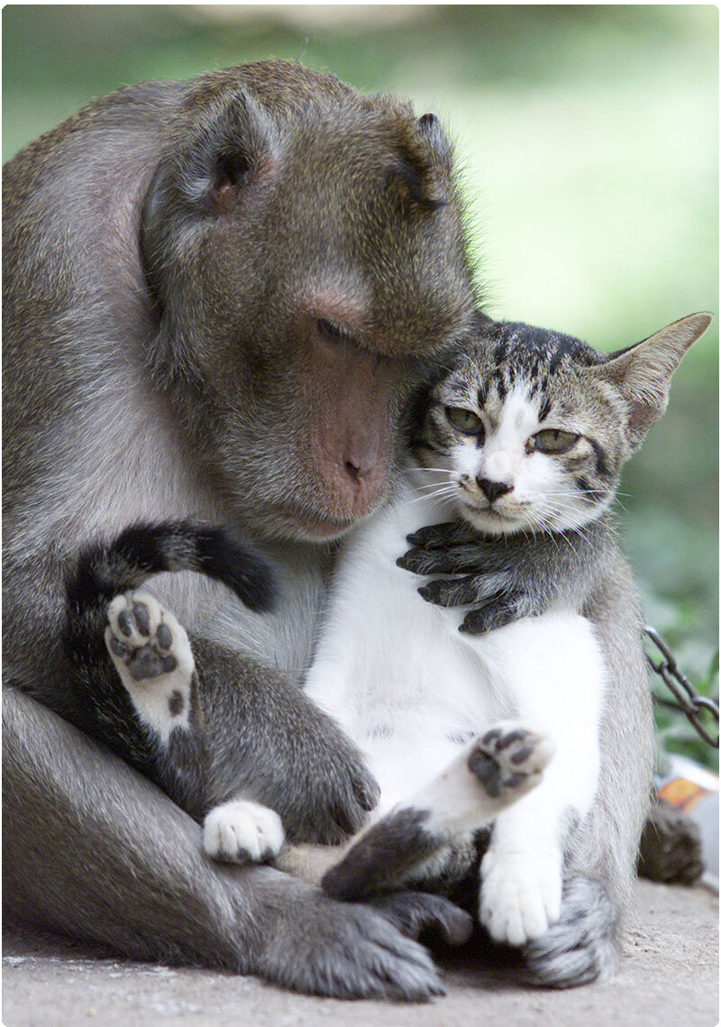 Оба брошенные своими владельцами много лет назад, эта обезьяна и кошка стали товарищами по играм в тайском храме. Обезьяна даже проверяет кошку на вшей. Зоопарк в Таиланде пытается сдружить совершенно разных животных, таких как свиньи с тиграми, чтобы привлечь больше посетителей. Собака, кошка и мышь отдыхают в конце долгого дня. Этот бурый медвежонок забрел в частный двор в Словении и с тех пор считает собаку своей семьёй. После того, как её котята умерли, кошка начала заботиться о щенках, чья мать была сбита машиной. Гиппопотам прижимается к своей приемной "матери" -120-летней гигантской черепахе, живущей в кенийском заповеднике. Обезьянка, Львенок и тигрята играют в парке тигров в Китае. Молодой попугай подружился со взрослым псом. Теперь благодаря очаровательной шляпке они могут совершать совместные прогулки. Обезьяна помогает попугаю избавиться от вшей в парке диких животных в Китае. Собака отдыхает на буйволе у реки в Пакистане. Этот осел и волк стали довольно близкими друзьями,