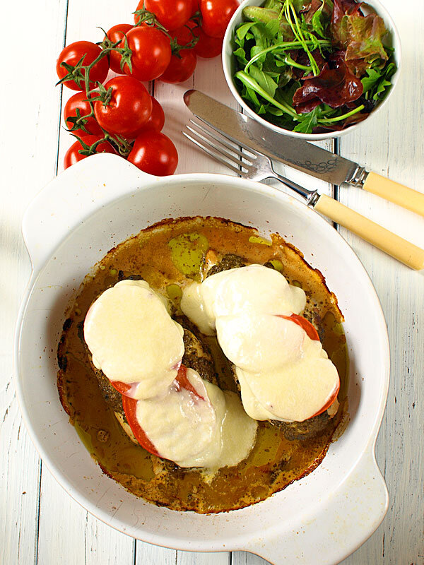 Запеченная куриная грудка, подается с соусом песто, помидорами и моцареллой, является простым и быстрым блюдом, и в то же время очень изысканным. Помимо ароматов он соблазняет своими цветами! Отличная идея для обеда без стресса, который вы приготовите в одно мгновение! Ингредиенты для запеченной куриной грудки с соусом песто, помидорами и моцареллой куриная грудка - около 0,5 кг