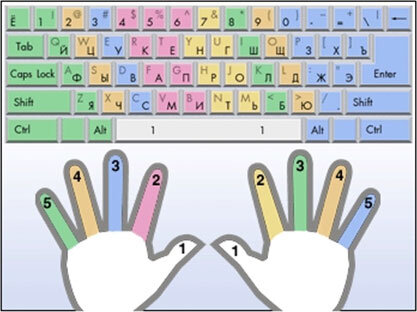Советы и рекомендации по обучению печати двумя руками сводятся к двум: Но УчиЭто считает, что научиться печатать двумя руками этими способами – издевательство. Многие, кто пробовал тренажер «Соло», хотя бы раз бил кулаками по клавиатуре, и мало кто дошел до конца. А кто заклеивал надписи на клавишах, очень быстро отрывал наклейки, поскольку без подписей и навыка невозможно печатать, а жить то как-то нужно. Что если УчиЭто даст довольно простой, но стоящий метод, который состоит из пункта? Распечатайте и положите около клавиатуры схему, которая показывает, каким именно пальцем нужно нажимать какую клавишу. Вам необходимо просто запретить себе нажимать клавиши не теми пальцами, что на рисунке. Просто начните печатать данным способом все тексты или комментарии, что вам нужно печатать на работе или в повседневной жизни, а очень скоро вы сможете печатать двумя руками, да еще и вслепую. Почему и как это работает Все, что вам необходимо для обучения печати двумя руками – это приучить себя н