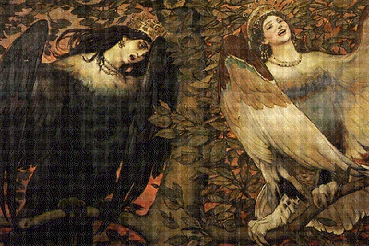 Гамаюн - красивая птица с головой женщины, которая предсказывает будущее, из русского фольклора. Внешний вид Появляется как красивая птица с головой и грудью женщины. Общее описание Гамаюн впервые появляется в середине XIX века в России. Его описание очень похоже на другие существо из русского фольклора, как Серена и Алконост. Советуем не путать Серену с птицей Гамаюн, так как Серены настроены резко отрицательно к людям. Алконоста же с Гамаюном разнит то, что после того, как Алконост откладывает яйца, он катит их к морю, а когда яйца разбиваются начинается ужасный шторм, который губит жизни людей. Гамаюн - посланник богов, поющий людям божественные гимны. Когда он приходит с востока, он несет смертельный шторм. Гамаюн может предсказать будущее для тех, кто умеет слушать и открыт для секретов. Птица также знает все на свете и о мире: о его создании, о богах, людях, монстрах и животных. Первое живописное представление Гамаюн было создано в 1895 году Виктором Васинцовым. Вдохновленный ка