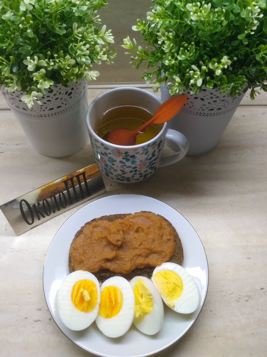 Доброго времени суток, худеющие! Кто впервые на моем канале? Давайте знакомиться! Меня зовут Аня и с мая 2018 года я перешла на около правильное питание и дефицит калорий. В своем блоге я рассказываю о том как идет мой процесс похудения со 132,2 кг, делюсь рецептами и опытом. В настоящее время мне удалось избавиться от 43 кг. Еще раз поздравляю со Светлой Пасхой! Мы с семьей решили особо не праздновать этот день - это касается еды. Поэтому праздничной еды не готовили. Праздник он же в душе? Не так ли?) Ориентируясь на прогноз погоды решили, что лучше проведем предпраздничный день на природе с шашлыками. Про этот день я уже рассказывала Вам вчера. Ну а в воскресенье запланировали велопрогулку по окрестностям. Проснувшись пораньше поначалу расстроились, увидев что идет дождь. Позавтракала двумя отварными яйцами и бутербродом с цельнозерновым хлебом и кабачковой икрой под зеленый чай. Во время завтрака я выпиваю капсулу омега -3 и витамины. Завтрак получился на 370 ккал. Ближе к 9 ча