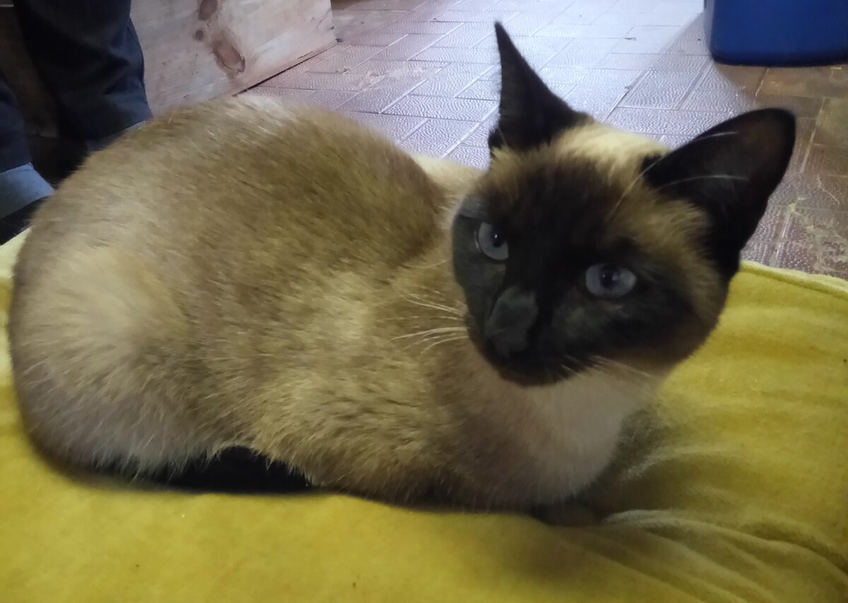Нет, внизу, зашуршали ветки и трава прошлогодняя, вышло к нам чудо, сиамский котёнок, глаза, как небо голубые, ластится, жалуется, худющий, голодный, но шкурка ухоженная, чистенькая, явно домашний. Погладили мы его, пошли дальше, бежит за нами, кричит... Так с постоянными остановками на ласку, дошли до конца парка, он за нами, плачет... Автомобилей испугался, идти боится, но и прощаться не желает.