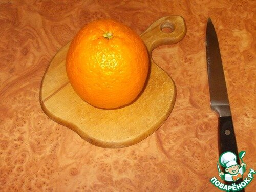 1. Первое, что нам надо сделать это хорошо вымыть наш апельсин. Кто-то моет просто водой, кто-то с содой, кто-то с мылом... Этот шаг на Ваше усмотрение, но не рекомендую мыть горячей водой, так как при разделке будет выделяться слишком много сока! Еще очень важно это острый нож с не слишком толстым лезвием!