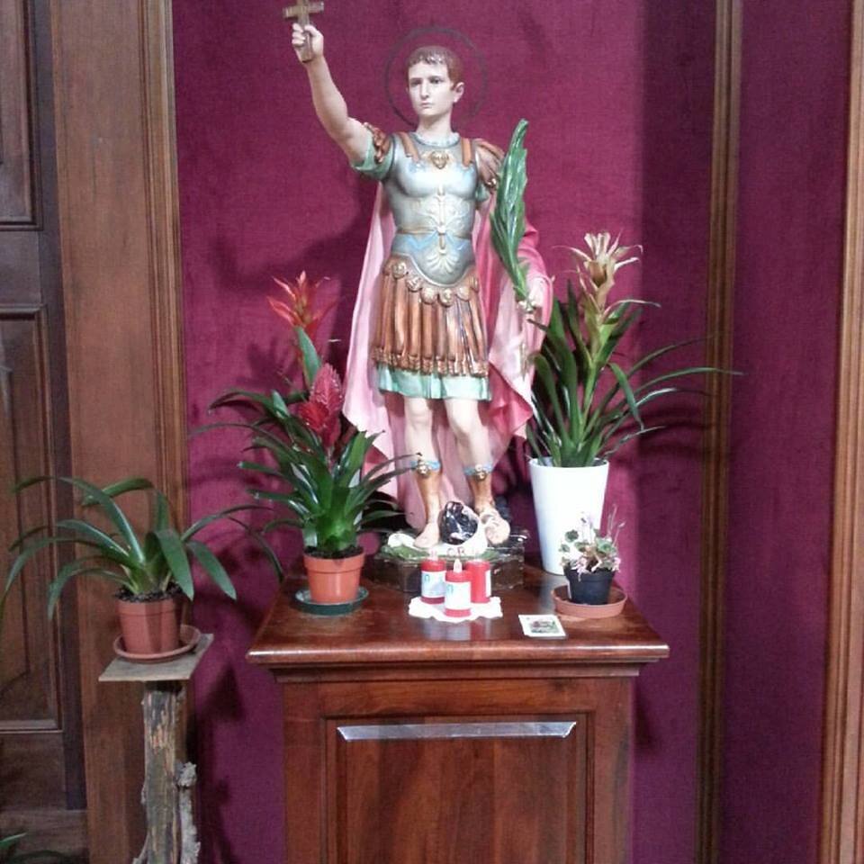 Этого святого мы встретили в Милане прошлым летом. Его изображают в виде римского воина, с пальмовой ветвью мученика, попирающего ногой ворона с надписью в клюве «завтра», и с крестом, на котором написано «сегодня».