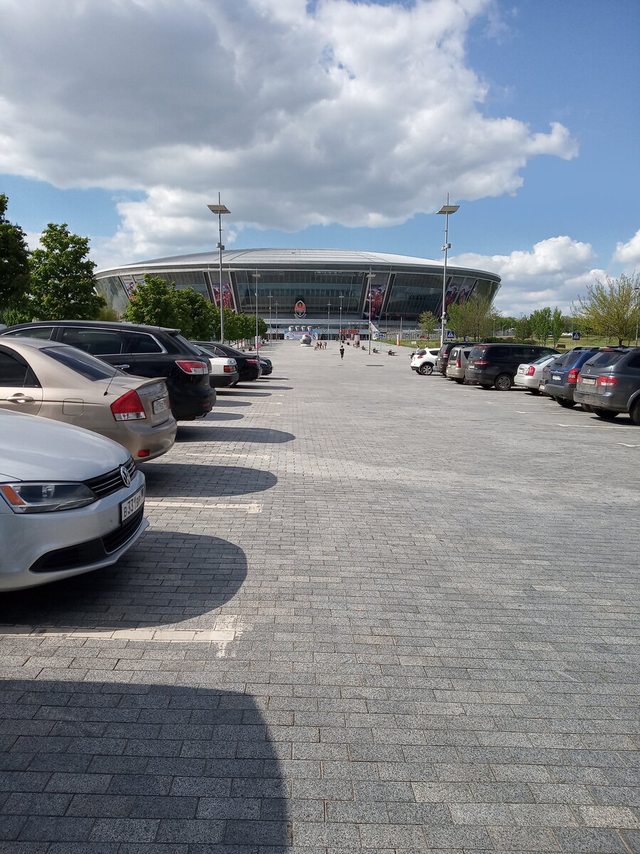 Построенный к Чемпионату Европы Евро-2012, грандиозный стадион "Донбасс-Арена" вместимостью более 52 тысяч зрителей стал новой визитной карточкой Донецка, который по незнанию многие считают шахтерским городом. Таковым он давно не является, но донецкая футбольная команда, что была создана в далеком 1936 году, так и носит имя "Шахтер". Ее эмблема и фотографии ведущих игроков еще украшают здание стадиона, но с весны 2014 года потративший на создание "Донбасс-Арены" и прилегающего к стадиону громадного ландшафтного парка 400 миллионов долларов самый богатый человек Украины и самый известный дончанин Ринат Ахметов осел в Киеве. А его любимое детище футбольный клуб "Шахтер", который знаменит как четырёхкратный обладатель кубка СССР, обладатель кубка УЕФА, одиннадцатикратный чемпион Украины, двенадцатикратный обладатель кубка Украины и восьмикратный обладатель суперкубка Украины, сегодня, как сообщает Википедия, временно играет на харьковском стадионе "Металлист". Но "Донбасс-Арену" даже