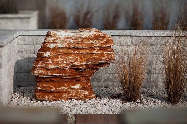 Особая категория декоративных камней – монолиты. Благодаря крупным размерам и интересной форме они напоминают скульптуру, поэтому их всегда используют в качестве центрального украшения.