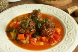 Очень люблю тефтели и раз в неделю готовлю это блюдо! Нравится сочетание мясо-овощи-рис! Много моркови и сельдерей стеблевой придают особенный вкус этому блюду! Обязательно приготовьте! Набор продуктов который нам понадобится : фарш - 0,5 кг ( я делаю сама, из любого мяса, можно обрезать из курицы, то же будет вкусно!), яйцо, лук - 2 шт, рис- 0,5 стакана, соль, перец черный молотый, 2 помидора или 1 ст.л. Томатной пасты, морковь- 2 шт, сельдерей стебель - пол.пачки, масло растительное и еще маленькая луковица для обжарки! Начинаем готовить- фарш смешиваем с промытым рисом и мелконарезанным луком, добавляем яйцо, соль, черный перец молотый. Тщательно перемешиваем. Чистим и режем кубиками морковь, сельдерей. Обжариваем на небольшом количестве масла ,лук порезанный кубиками, до золотистого цвета. Разводим томатную пасту и выливаем в обжаренный лук. Тушим до яркого цвета. Если используем помидоры - немного обжариваем. Заливаем воду , доводим до кипения. Выкладываем морковь и сельдерей и в