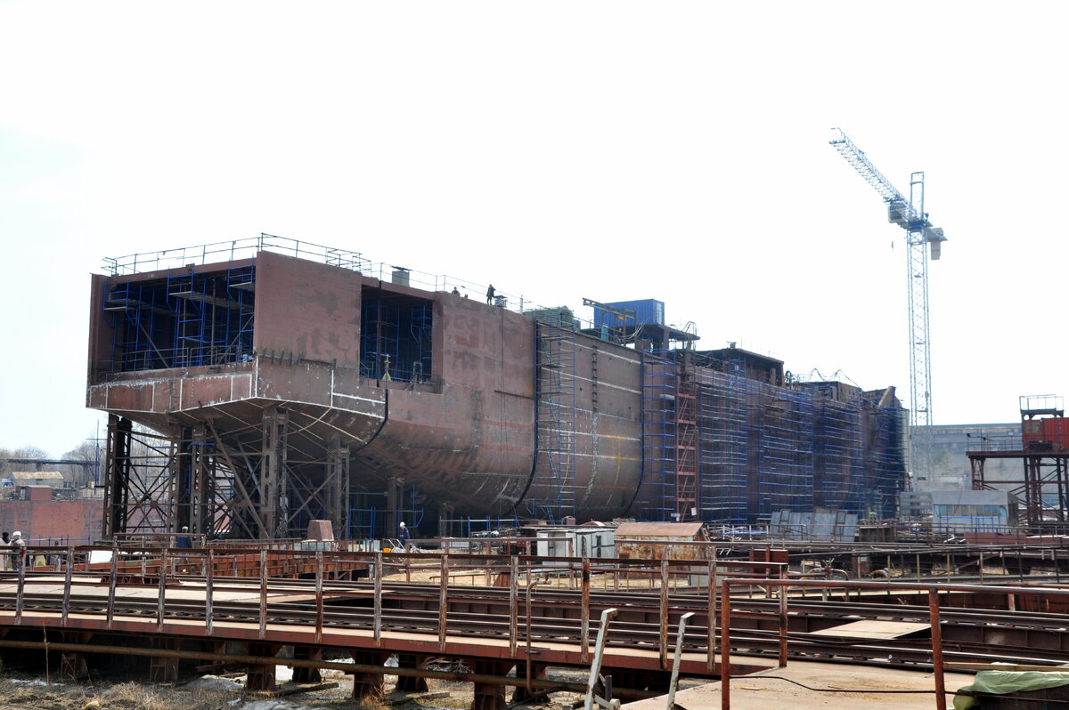 Строительство морских судов ускоряется. Амурский судостроительный завод опубликовал интересную новость. Она касается строительства первого парома для России. Но главное в новости - фотография. Темп строительства поразил меня. Рассчитывал увидеть пару секций, а оказалось..ещё немного и скоро спуск на воду. В данный момент на судне заканчиваются работы по сварке корпуса. Все секции в ближайшие дни будут соединены и начнутся работы по сварке конструкций внутри блоков. На палубах и аппаратных выгородках. Также предприятие сообщает, что монтаж линии вала, рулевых и подруливающих устройств носовой части уже начаты. Ведётся монтаж донно-бортной арматуры. В конце мая будут испытаны балластные цистерны, которых на нём 52 и из них испытаны пока только пять. Если говорить в общем, опыта строительства паромов у России не было. Точнее был, но потерян ещё в 80х. Сегодня промышленность возрождается, судостроение набирает тем и растёт количество гражданских заказов. Главная цель - перевести оборонн