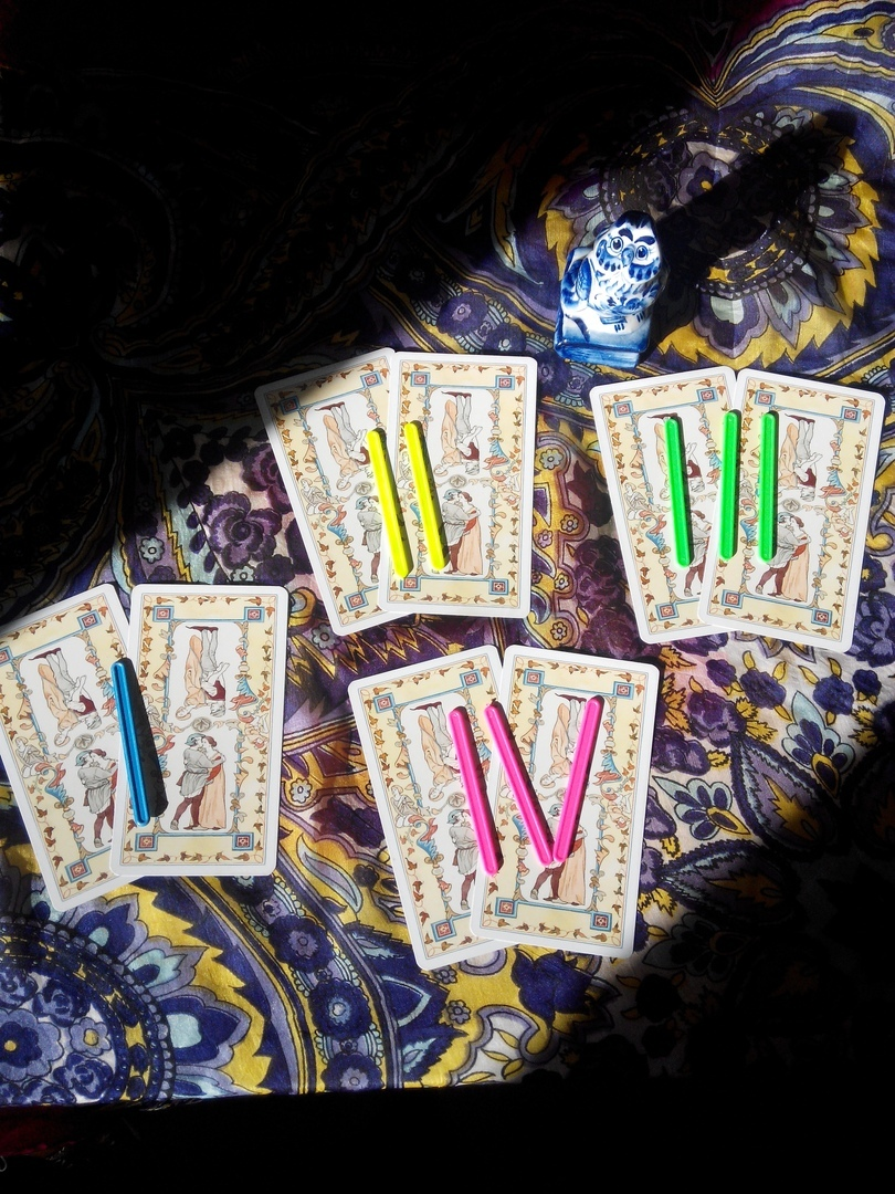1 ПОЗИЦИЯ.Иллюзия: ПАЖ МЕЧЕЙ. Вы стараетесь изо всех сил угодить вашему мужчине, считая его брутальным мачо, не способным на всякие "телячьи нежности". Вы считаете своим оружием ласку как противовес его колкостям. Он позволяет себя любить, и это дает вам ощущение собственной значимости. Ведь вашей любви хватит на вас обоих. Реальность: 4 КУБКОВ. На самом деле ваш мужчина до встречи с вами был обделен не только вниманием, но и любовью. Он привык быть в стороне и наблюдать за происходящим с другими, но не с ним. В душе он маленький мальчик, ждущий похвалу и ласку от женщины, ее тепло и заботу.