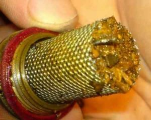 Перед счетчиком воды обязательно должен стоять так называемый фильтр грубой очистки с тонкой металлической сеткой внутри. Именно он первым на своём пути, улавливает различные загрязнения в виде песка, камней и другого мусора. Соответственно, если всё это в центральном трубопроводе изобилует в больших количествах, то и неудивительно, что со временем фильтр перед счетчиком воды может сильно засориться. При этом самые первые симптомы тому, является резкое снижение давления в трубопроводе, вода начинает течь по нитке, а иногда и вовсе перестаёт идти. Поэтому, прежде чем бежать в ЖЭК с угрозами или вызывать мастеров, следует в первую очередь проверить фильтр перед счетчиком и почистить его при необходимости. Здесь самое главное уяснить одну важную деталь — если фильтр также опломбирован вместе со счетчиком воды, то для его чистки следует обратиться в нужные инстанции для распломбирования. Чистка фильтра счетчика воды Но в некоторых случаях бывает так, что фильтр перед счетчиком не опломбир