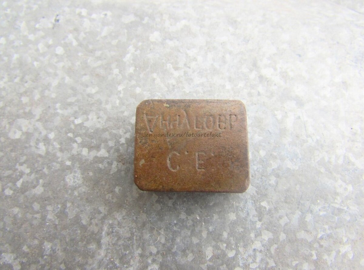 Попал мне в руки не самый обычный предмет. Вернее сказать - предмет самый обычный (небольшой металлический брусок), но с буквами. Вот такой: Чтобы вы могли представить масштаб, скажу размеры - в длину около 2,5 см, а в ширину 1,5 см. В принципе, догадаться о предназначении этого предмета совершенно не сложно. Достаточно прочитать надпись с помощью зеркала или с помощью оттиска. Написано "Анчуговъ С.Е." Судя по всему данный предмет является обычной вставкой от именно печати. Хотя, возможно, это и не вставка, а основная часть, к которой крепилась ручка. Наличие буквы ять указывает, что печать является "дореволюционной", поэтому обнаружить ее владельца вряд ли представляется возможным. Единственный вариант - искать в церковных архивах той местности, где эта печать найдена. Но кто мне позволит это сделать. На коллекционном рынке такие уникальные вещи сегодня мало востребованы. Объясняется это легко - количество коллекционеров, которым бы была интересна печать, не велико. Отсюда и чисто