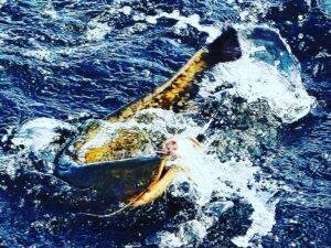 - подсачивать пойманного сома лучше вдвоём, меньше риска сломать удилище и сохранить рыбу;