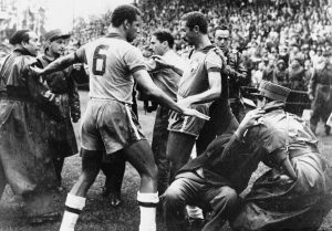 Это была фантастика! К движениям ультрас я никаким боком не отношусь, но "околофутбол" это уникальное социальное явление, вероятно единственное в своем роде. И если будем вспоминать крупные драки в футболе, то начнем с ЧМ 1954 года. Обнаженный нерв и никаких артистов (ну почти) - это Бёрнское побоище. Пятьдесят четвертый год - политический мир потряхивает сменами властей в странах третьего мира (активная работа ЮЭСЭЙ). Сталин, к сожалению, скончался, а Никиту Сергеевича они опасались куда меньше. А вот в Швейцарии стартует Чемпионат Мира по футболу, который запомнится, как наикрутейший ЧМ в истории. Особенно мощно выступала сборная Венгрии. Болельщики окрестили ее Аранчапат - золотая команда. На групповом этапе они отделали немцев 8:3, а корейцев раскатали, как немощных, со счетом 9:0. Сборная Бразилии, в своей группе, тоже взяла неплохой разбег наказав Мексику 5:0, но потом напоролась на серьезных сербов (Югославия) и с трудом сыграла в ничью 1:1 И вот, 27 июня в Берне, 1/4 финала