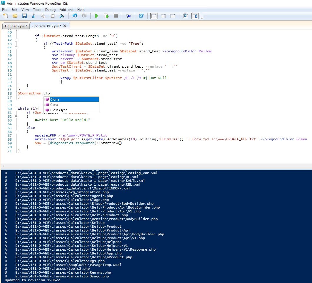 Windows PowerShell является скриптовым языком программирования, анонсированным Microsoft в 2003 году, который представляет большие возможности по администрированию и конфигурированию Windows систем. Если до этого для подобных операций использовался командный язык (пакетные файлы, скрипты, сценарии, ”батники”) запускаемые из консоль, то теперь есть возможность писать скрипты на более мощном языке, используя больше возможностей самой ОС. PowerShell предлагает нам писать сценарии как из самой консоли, так и из полноценной среды разработки PowerShell ISE, которая является неплохим помошником при написании скриптов, помогая такими функциями как подсветка синтаксиса и автозаполнением. На самом деле ничего сложного нет, поначалу конечно страшно, не понятно, но в итоге оказалось все очень просто и очень функционально. Powershell в качестве команд использует командлеты. Командлеты представляют из себя предопределенную команду, а выглядят они как связка глагола и существительного через дефис.