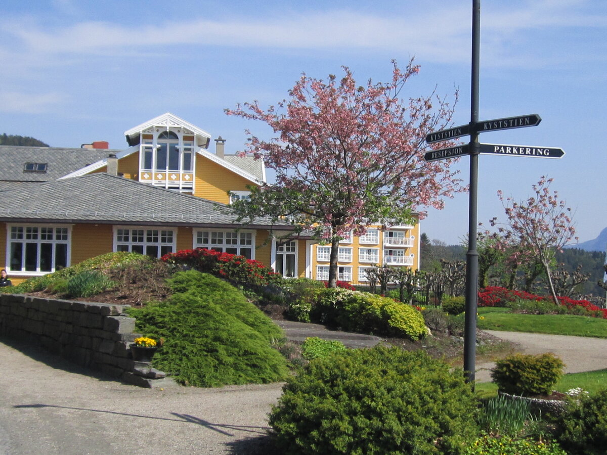 Исторический отель Сульстран (Solstrand) - один из самых известных отелей Норвегии. Весеннее цветение на побережье Бьорнофьорда
