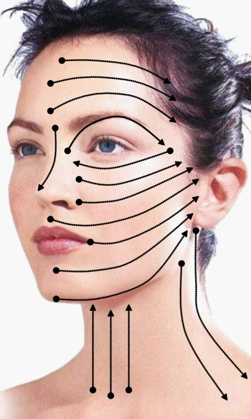 Речь пойдет о простейшем правиле, над которым, к сожалению, женщины мало задумываются. Все косметические процедуры – очистка кожи лица и шеи, наложение крема, пудры, маски, самомассаж, снятие масок, крема и т.д. – нужно проводить строго по линиям наименьшего растяжения кожи, снизу вверх. Кожные линии идут в следующих направлениях: