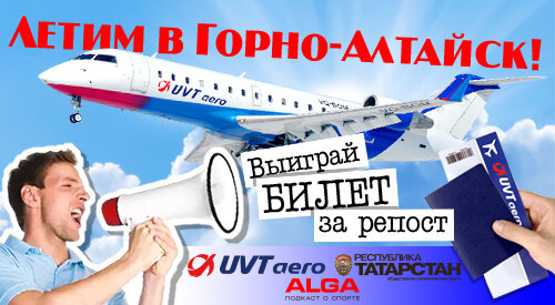 Победитель будет определен с помощью генератора случайных чисел. Выигрышем станет сертификат на перелет по маршруту Казань – Горно-Алтайск – Казань на два лица. Срок совершения поездки – до 30 июня 2019 года.