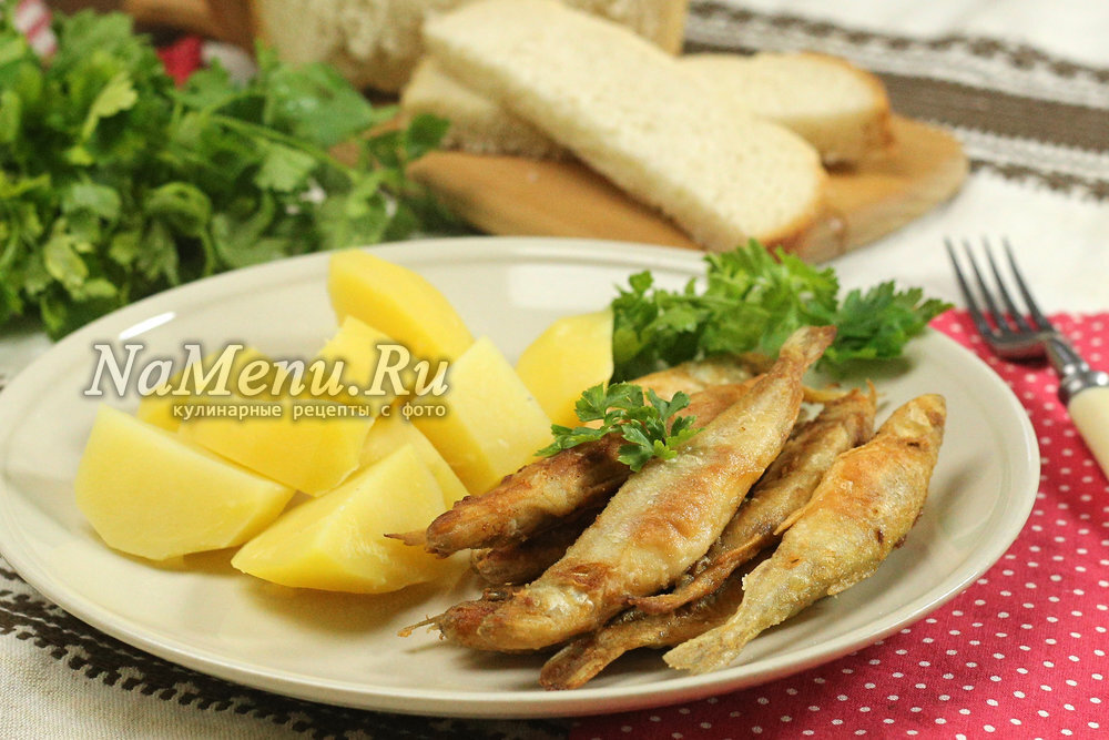 Необходимо будет: 💦Промываем рыбу водой. Чистить и потрошить не надо 🧂Присаливаем, оставляем на пару мин. 🐟Обваливаем каждую рыбку с двух сторон в муку. При желании муку можно смешать со специями для рыбы или с черным перцем 🔥Обжариваем по 2 мин. с каждой стороны в сковороде с маслом https://namenu.ru/10828/Vkusnaya_zharenaya_koryushka_na_skovorode/