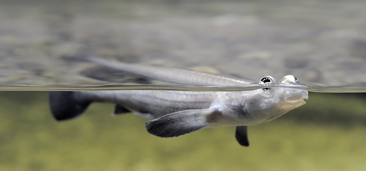 Речь в этой статье пойдет о необычной и редко встречающийся рыбке в аквариуме четырехглазке или Anableps. Эта рыбка идеальна для разведения в полюдариуме, и если вы хотите завести полюдариум то я рекомендую поселить эту рыбку в него в качестве соседей запустить стайку неонов. Четырехглазка относится, к семейству четырехглазковые, род анаблепсовые, тип хордовые, отряд карпозубообразные. Температура воды 25 до 30°С., кислотность Ph 7.5-8.5, жесткость воды 8-20°. Вода солоноватая должна содержать 2,5-3% соли. Длина тела взрослой самки от 25-30 см. самца в два раза меньше 12-15 см. Естественной средой обитания являются реки, и лагуны северной части Южной Америки, илистые прибрежные воды Парагвайского залива через Гайану, Французскую Гвиану, Суринам дальше через бразильскую дельту реки Амазонки. Тело рыбки удлиненное цилиндрической формы,глаза расположены над головой как у лягушки. Самым удивительной особенностью данной рыбки это ее глаза, фактически их два, но каждый глаз разделен перего