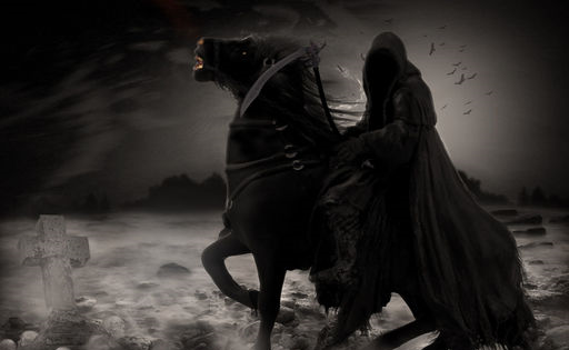 Этот случай мне рассказал один мой знакомый. Они с братом часто ездят на рыбалку, на одно из озер, а ночуют у родственников, в деревне неподалеку. Так вот. Случилось это поздней осенью. За неторопливым разговором, с удочками наперевес, время пролетело незаметно, стало вечереть, да и погода портилась прямо на глазах. Небо медленно затягивало низкими, тяжелыми тучами. Того и гляди, вот-вот дождь заморосит, а до деревни ещё идти минут двадцать. В общем, возвращались уже в сумерках. Усталость явно брала своё. Они сбавили шаг, разговор затих сам собой, мысли были только об одном – отдыхе и горячем ужине. До поселка было уже рукой подать. Они вышли на открытое место, и вся окрестность была видна как на ладони. Отчетливо просматривались крайние дома, а в стороне от деревни - старое кладбище. У самого горизонта тонкой полоской темнел лес. Обычный пейзаж, ничего особенного. Вдруг на кладбище, среди могил, как будто из под земли вырос всадник на черном коне и, покружив