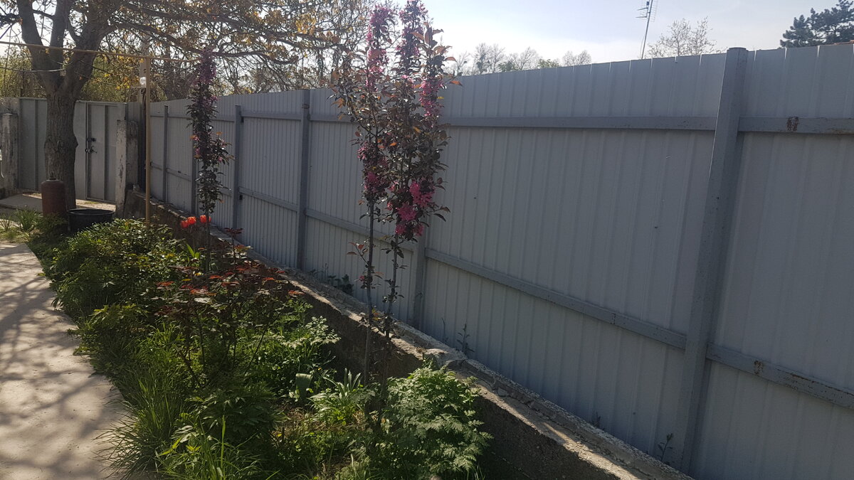«А что у вас такие глухие заборы между соседями? Ветерок не гуляет, вот розы и болеют. Да и жара нагревает профнастил очень сильно и на расстоянии метр-полтора ничего не растет.» Такие нам пишут письма. По опыту ведения канала мы уже поняли, что глухие заборы - волнующая тема, вызывающая массу критики и вопросов. У нас получилось так: когда мы въехали в этот дом, со стороны одних соседей у нас уже был глухой забор, а с другой стороны – сетка рабица. Соседи через сетку сразу предложили заменить её на шиферный забор, по деньгам 'это всех устроило, расходы пополам. Мы согласились. Любому владельцу частного дома понятно, что светить личной жизнью перед соседями совсем не хочется. В тяготении людей к приватности нет ничего плохого или странного. А со стороны улицы мы, действительно, поставили забор из профнастила. С внешней стороны – коричневый, со стороны участка – серый. Вопрос эстетики мы решили так: посадили под забором со стороны двора декоративные яблони. У них красивая листва, по в