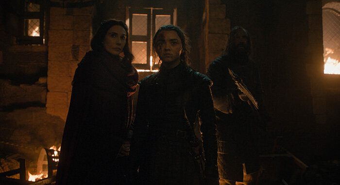 Когда Берик и собака позже приходят ей на помощь, это почти как если бы Арья сдалась. Она почти беспомощно смотрит, когда мертвяки нападают на Берика, что очень на нее не похоже. Трио отступает в комнату, где Мелисандра пряталась / ждала их, и Берик умирает.