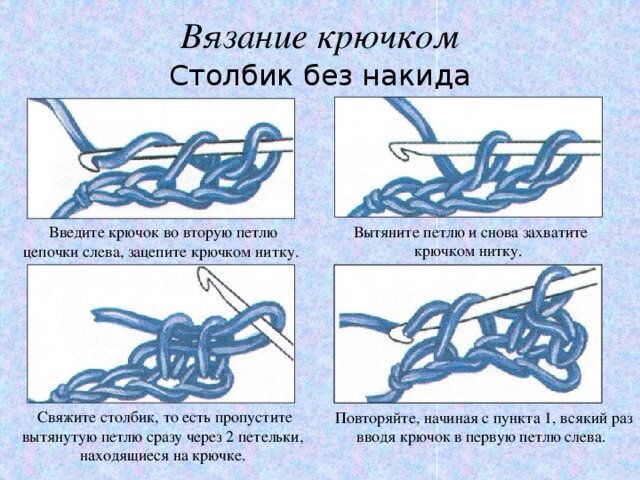 Набираем цепочку из нужного количества петель, + 1 петля подъёма. Вяжем в обратную сторону столбики без накида. Затем 1 петля подъёма, переворачивает вязание, вяжем то же количество столбиков и так далее. Таким образом можно связать все что угодно: игрушки, носочки, одежду, все что душа пожелает. Так же во время вязания можно в конце ряда менять цвет ниточки, и вязание будет полосатым. Главное, при выборе пряжи купить подходящий по размеру крючок, иначе вязать будет неудобно. Для детей лучше выбирать натуральную пряжу или с добавлением натуральных материалов.