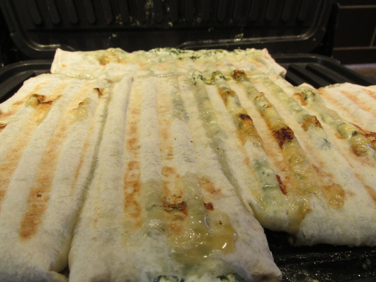 Как обычно нагреваем гриль, клаем творог с сыром завернутый в лаваш, закрываем крышкой и ...ждем. Ждем минут 12-15.