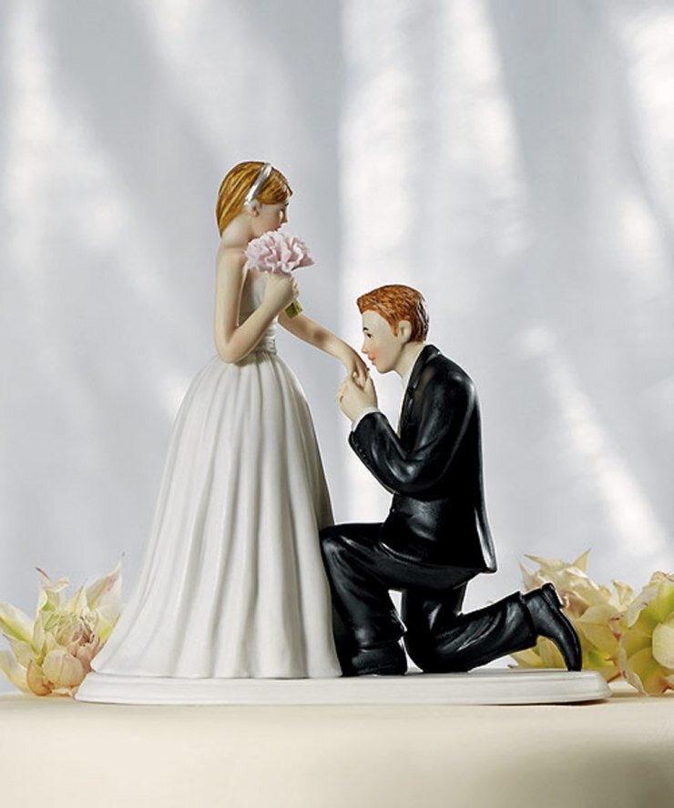 Жених, невеста, многочисленные гости и большой торт. Но чего-то не хватает? А вы не забыли выбрать фигурки для торта? Если вы затрудняетесь, то мы поможем. Вы скажете, мелочь. Да! Но любое торжество состоит из таких мелочей, которые, в общем и целом, составляют одну большую праздничную картину. Приносящие удачу и счастье Выбор статуэток для торта сегодня огромный на все лады и разные подтексты, с другой стороны, почему бы не поступить проще и не выбрать тот вариант, который просто сможет привлечь нечто хорошее в столь большой день? Поэтому, прежде всего, нам нужны фигурки, которые несут за собой нечто положительное. Наивно думать, что традиция украшать свадебными фигурками торт, как и многие другие, пришла из запада. На самом деле, еще славянские предки готовили праздничный каравай. Он представлял собой большой и круглый пирог, напоминавший солнце, что тогда было в ценности. Соответственно этот пирог украшали самыми разными оберегами, в том числе фигурками главных героев - невесты и же