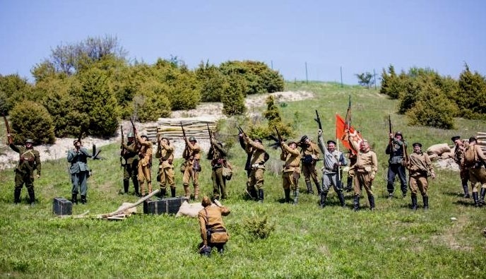 В Анапе завершилась XVI молодежная военно-патриотическая акция «Десант славы». В этом году «Десант славы» впервые был представлен в виде реконструкции боя разведгруппы капитана Калинина возле села Варваровка, что между курортными поселками Су-Псех и Сукко (9 километров от Анапы). 76 лет назад, в ночь с 30 апреля на 1 мая 1943 года в окрестностях села Варваровка разведгруппа из 11 краснофлотцев под командованием Дмитрия Калинина была обнаружена противником. Пришлось вступить в бой с солдатами располагавшегося здесь румынского полка. Большая часть разведчиков погибла, оставшиеся в живых стали отступать к морю, пробиваясь через позиции румын. Раненный в ногу и руку командир остался прикрывать отход моряков. Отбиваясь от наседающих румын, капитан Калинин уничтожил до 30 солдат противника. Его пытались взять живым в плен. Подпустив врагов, капитан подорвал себя последней гранатой. Подвиг советского офицера вызвал уважение противника. Командир румынского полка приказал похоронить его