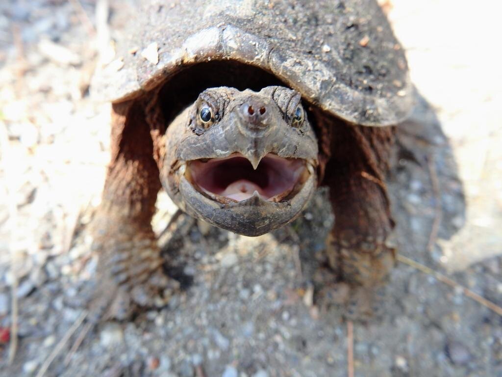 Как ни странно, зубов у кусающейся черепахи нет. Вместо этого она вооружена короткой и мощной пастью с острыми краями, которая позволяет ей перемалывать своим жертвам косточки.