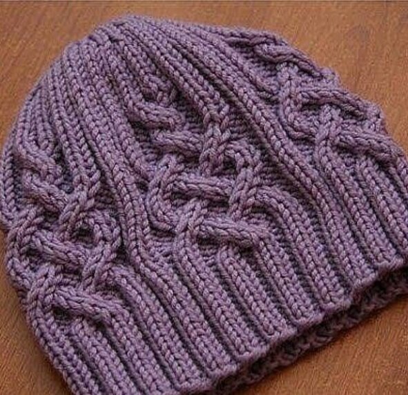 Набираем на спицы №4 110 петель. Вяжем резинкой 2 лицевые, 2 изнаночные 15 рядов. Дальше вяжем по схеме. Провязав в высоту всего один аран, вяжем дальше резинкой 2 лицевые, 2 изнаночные, пока высота шапки не станет 23 см. (Я вязала только по схеме, резинкой не вязала. Длина шапки уже была 20 см.) Делаем убавления. Убавлять будем постепенно, чтобы шапка легла аккуратно по голове. Описание вязания макушки шапки 1 ряд: *2 лиц, 2 изн., 2 лиц., 2 изн., 2 лиц., 2 вместе скрещенной изн., 2 вместе изн., 2 лиц, 2 изн, 2 лиц., 2 изн.*. Повторить 5 раз ** 2 ряд и все четные: по рисунку (какую