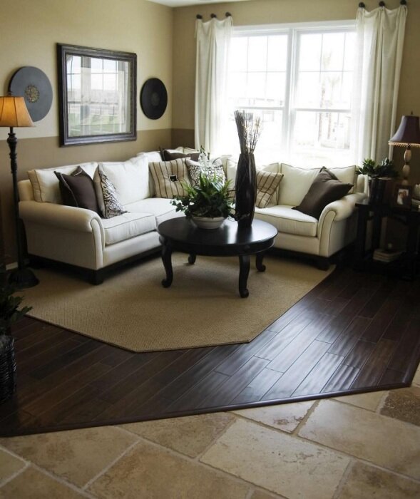 Как показывает практика, дизайн малогабаритных помещений лучше оформлять в светлых тонах, которые зрительно расширяют пространство. Если же делать зонирование, то допустимо использовать иную цветовую гамму. Приемы зонирования небольшой квартиры Осуществляя дизайн, можно расставить акценты при помощи покраски стен и расстановки мебели. Этот простой прием дает такое зрительное восприятие, что обозначенные участки выглядят как раздельные зоны. С той же целью акцентирования в зоне для сна используют плитку, а в «гостиной» – паркетную доску. При этом цветовое решение может быть как в одной тональности, так и отличаться. Рекомендуется выбирать более светлый тон потолка, по сравнению со стенами, так, он будет казаться выше. Размещая осветительные приборы, лучше замаскировать их и сделать незаметными. Разделение на зоны при помощи мебели Основное правило – так расставлять мебель, чтобы она не препятствовала перемещению по комнате. Для этой цели лучше приобрести складную мебель с множеством