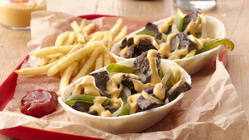 Превращаем свой любимый сырный стейк в Тако) Приготовление займёт всего 30 МИН Ингредиенты 8 Порции 8 Ингредиенты: 500г. бескостной говяжьей вырезки 1 чайная ложка приправы для стейка 1/4 чайная ложка соли 3 столовые ложки сливочного масла 1 крупный лук, разрезанный пополам вдоль и мелко нарезанный (2 стакана) 1 большой зеленый болгарский перец, нарезанный тонкими полосками 1 упаковка "миски тортильи" 1/2 чашка (400г.) сыра Способ приготовления: 1. Обрезать лишний жир с говядины. Нарезать говядину полосками в пол сантиметра; поместить в среднюю миску. Добавьте приправу для гриля и соль; перемешайте. Отложите. 2. В 12-дюймовой антипригарной сковороде растопите масло на среднем огне. Добавить лук и болгарский перец, тушить 6-8 минут, часто помешивая, до готовности. Снять с огня; накрыть крышкой и держать в тепле. 3. На той же сковороде говядину готовить полосками на среднем огне 5-7 минут, часто помешивая, пока она не станет розовой. Добавить наш лук и болгарский перец; 4. Между тем,