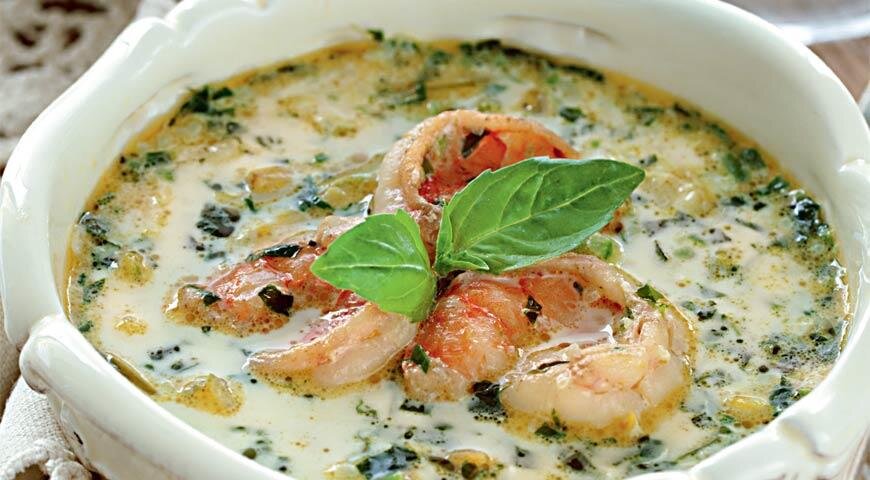 Необычный и очень вкусный суп я предлагаю вам приготовить вместе со мной. Его вкусовые качества непременно понравятся каждому. Готовим суп по-фински, из расчета на 6 порций нам понадобится: · цветная капуста – 1 головка (небольшой размер); · зеленый горошек – 125 г. · морковка – 125 г. · шпинат – 125 г. · стручковая фасоль – 200 г. · редиска – 5 шт. средних размеров; · вода – 2 литра; · сахар – 1ст. ложка; · сливочное масло - 3 ст. ложки; · соль – 2 ч. ложки; · мука – 3 ст. ложки; · сливки – 200 гр. · 2 желтка; · молоко (по желанию); · добавочно 1-2 ч. ложки соли; · перец черный меленый на кончике ножа 2 раза; · очищенные креветки – 200 г. · укроп резанный 2 ст. ложки. Приготовление 1. Промываем овощи, чистим, разделяя цветную капусту на мелкие соцветия. 2. Фасоль делим на части, редиску на половинки, перебираем шпинат. 3. В 2 литра воды добавляем соль, сахар, ставим на плиту и доводим до кипения. 4. В кипящую воду укладываем овощи без шпината и варим при закрытой крышке на медленн