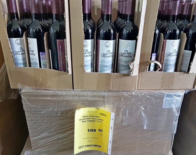 Лозунг «Мир, труд, май» уже не актуален. Сейчас майские праздники у большинства россиян проходят под лозунгом «Дача, шашлыки». А какие шашлыки без запивки? Что новенького завезли в магазин «Светофор» к майским длинным каникулам. Большой выбор таманских - кубанских вин. Очень дешевых. Но на природе, да под шашлычок….. самое то. Лучше к мясу конечно подходит красное. Есть «Изабелла» по 110 рублей за бутылку. Для любителей менее насыщенного вкуса, чтобы не перебивать вкус мяса, «Каберне» Но, если предпочитаете вино белое, то и для вас есть белое столовое мускатное. В нем, кстати, очень здорово мясо для шашлыков вымачивать. Получается очень нежное и вкусное И не смотрите что оно полусладкое. Сахара в этом вине «остаточный», только тот, что в винограде содержится. Поэтому для маринада подходит отлично. Но производитель всех этих вин какой-то "подвальный". ООО "Прохлада" Набрали к шашлыкам кубанского. Производства Крымского винзавода. Да, да. Он расположен не в Крыму, как можно подумать