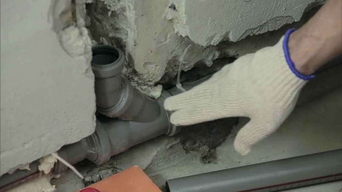 Как быстро и правильно уложить канализационные трубы. Советы от мастера. Чтобы правильно проложить канализационные трубы, необходимо соблюсти несколько условий. Уклон для трубы диаметром 50 мм должен составлять 2 см на 1 м. Все отводы от основной трубы должны выполняться углами 45°, чтобы поворот был более плавным, и вода по трубам проходила быстрее, а, в случае необходимости, можно было легко почистить трубу тросиком. Важно правильно обрезать канализационную трубу. Для этого совместить трубу с предполагаемым местом вывода из стены и сделать отметку по низу раструба. Отрезать трубу труборезом. При обрезании трубы таким способом получается аккуратная фаска с внешней стороны трубы, которая необходима для того, чтобы при соединении труб не замять резиновое уплотнение. В случае обрезания трубы ножовкой или болгаркой, фаску надо сделать самостоятельно с помощью наждачки или напильника. Важно зачистить трубу изнутри, чтобы не осталось заусенцев. Для более герметичного контак