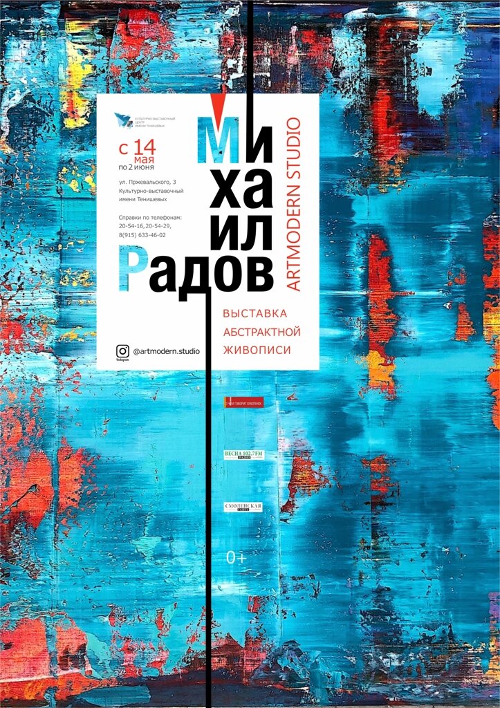 14 мая в КВЦ имени Тенишевых состоится открытие выставки абстрактной живописи Михаила Радова «ARTMODERN STUDIO». Михаил Радов родился в 1970 году. С красным дипломом окончил Московское художественное училище. Совершенствовал своё мастерство у ведущих преподавателей Московской государственной художественно-промышленной академии имени С. Г. Строганова. Художник работает в направлениях абстракционизм и импрессионизм. Радов начинал как импрессионист и продолжает писать картины в этом направлении. После знакомства с творчеством Джексона Поллока, Марка Ротко и Герхарда Рихтера Михаил Николаевич увлёкся абстракцией. На сегодняшний день его в наибольшей степени вдохновляет передача восприятия мира посредством абстрактной живописи. Михаил Радов очень внимательно изучает и ищет уникальные цветовые решения, наблюдая их в природе и своей повседневной жизни, и передает это в своих картинах. Картины Михаила Радова находятся в частных коллекциях любителей живописи в России и за рубежом: в Великобрита