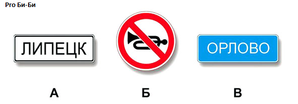 Здравствуйте дорогие читатели и гости канала Pro Би-Би! Сегодня с Вами разберем еще один вопрос из экзаменационного билета. Вопрос простой, но все равно совершают ошибку. И мы сегодня его разберем. Вопрос в билете звучит примерно вот так: Какие знаки позволяют подавать звуковой сигнал только для предотвращения ДТП? 1. А и В. 2. Только А. 3. А и Б. 4.Только Б. Уже знаете правильный ответ? Не торопитесь, дочитайте статью до конца и убедитесь в нем. Перед нами 3 знака. Знак А - "Населенный пункт" на белом фоне в Правилах дорожного движения нумеруется как 5.23.1. На поверхности прямоугольной таблички белого цвета можно обнаружить буквенное название самого города/поселка. Знак Б - "Подача звукового сигнала запрещена". Запрещает подачу звукового сигнала, за исключением случая, если подаваемый сигнал необходим для предотвращения дорожно-транспортного происшествия. Знак В - знак "Населенный пункт" на синем фоне, обозначающий конец зоны действия специального режима движения, являет