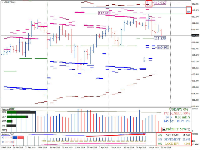 Увеличение залокированных позиций инвесторов за прошедшую неделю при этом составило менее 1%. Рассматриваемый показатель свидетельствует о вероятном однонаправленном движении котировок фьючерса японской иены на протяжении текущей торговой недели. Также стоит акцентировать внимание читателей на том, что суммарные денежные вложения в USD/JPY однозначно свидетельствуют о перевесе капитализации быков: 73% покупателей и только 27% продавцов. Ближайшим важным сопротивлением на дневн