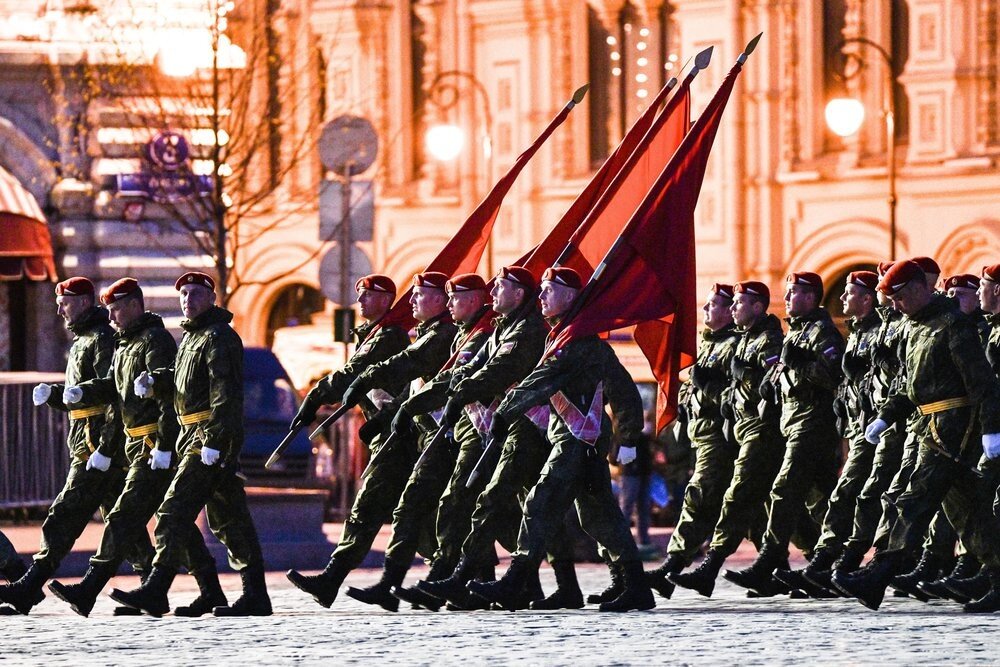Источник Первая ночная совместная тренировка пешей и механизированной колонн парадного расчета по подготовке к параду Победы 9 мая завершилась на Красной площади в Москве. В репетиции приняли участие свыше 13 тысяч человек и 150 единиц военной техники. Совместная тренировка на Красной площади началась в 22:00 с торжественного выноса почетным караулом копии знамени Победы. Далее стартовал объезд строя для отработки приветствия министра обороны Российской Федерации Сергея Шойгу. В рамках ночной репетиции было отработано торжественное прохождение военнослужащих высших военных учебных заведений, суворовских, нахимовских военных училищ, кадетских корпусов, а также участников Всероссийского движения «Юнармия» и представителей других силовых ведомств. Также по Красной площади проехалась военная техника, в частности, танк Т-34, автомобили «Тигр-М», бронетранспортеры БТР-82А, боевые машины пехоты БМП-3, самоходные гаубицы «Мста-С», зенитные ракетные комплексы «Бук-М2», зенитные ракетно-пушечные