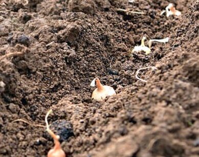 Помните, что лук лучше укореняется в прохладной почве (при +10 градусах).